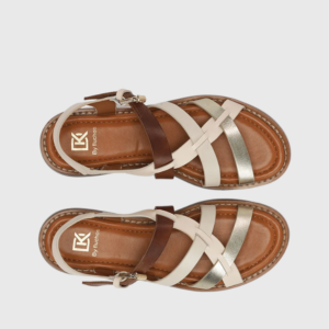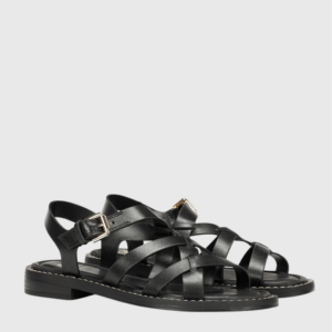 Sandalia plana de mujer. Diseño elegante con tira ajustable en el tobillo y estilo de dedo. Con maxi hebilla central y detalles fruncidos decorativos ¡Perfecta para cualquier ocasión, combinando estilo y funcionalidad en cada paso!